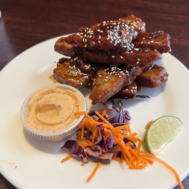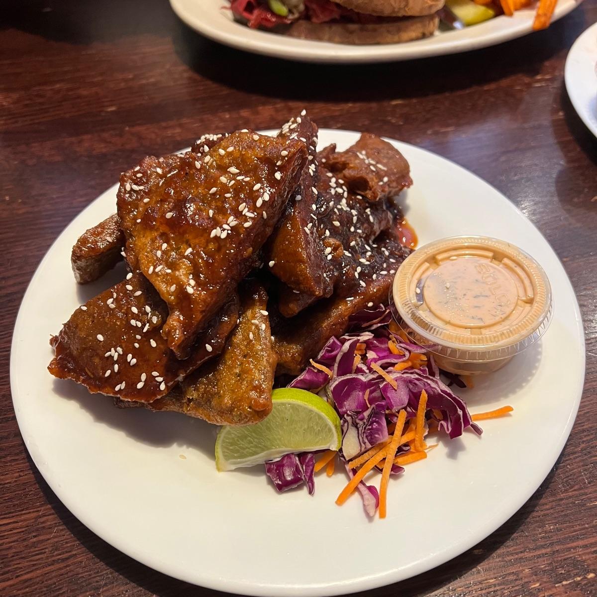 they definitely give you a good amount of wings! they are crispy on the outside and covered in delicious thai chili sauce. the sauce is on the spicy side, and so is the sriracha ranch it is served with. very filling!