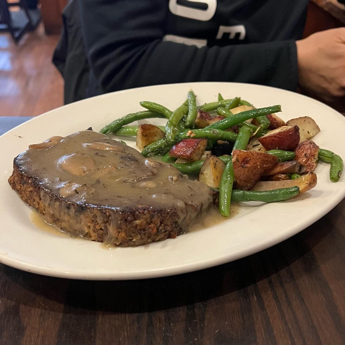 i was pleasantly surprised by this loaf! i enjoyed the texture, and the mushroom flavor shone through. to me, the texture was similar to a veggie burger (one made as a vegetable patty rather than replicating meat), but it was something i enjoyed.