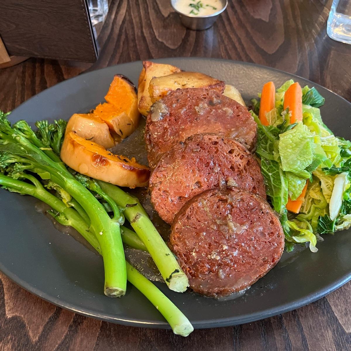 The Seitan was really nice, as were the potatoes, yum!! And a great amount of veg. The gravy was very thin, definitely needs to be a bit thicker. And I’d love a yorkie, if possible.