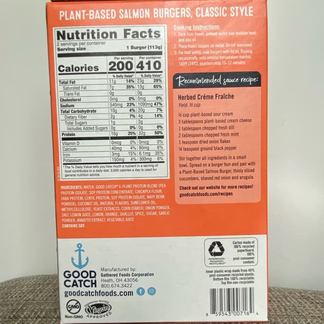 There are two patties per box. It has 16g of #protein per patty, 3mg of #iron, 150mg of #potassium, 40mg of #calcium and 200 calories.