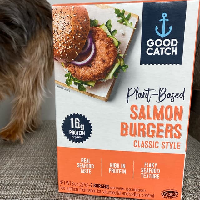 I did not like the flavor of this #plantbased #salmon #burger. However, my sister did like them and our puppy loved the smell of it while it was cooking! Lol. It looked like a #vegan burger while it was #frozen. The smell, to me, was fine. Kind of smelled a bit like a mix of #nutritionalyeast and something else that I can’t seem to put my finger on 🤔 I won’t be buying again.