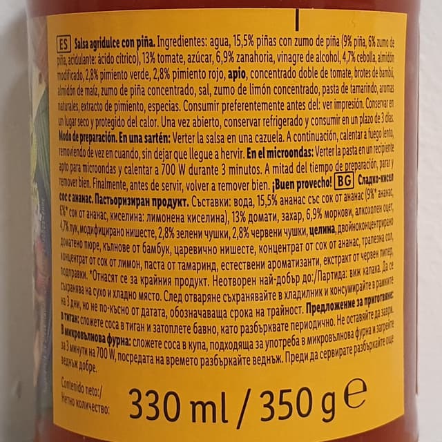 Pica un poco y tiene muchos tropezones. Sabe mucho a pimiento y eso no me gusta... se la daré a otra persona porque fue probarla yo y decir "no." No volvería a comprarla.