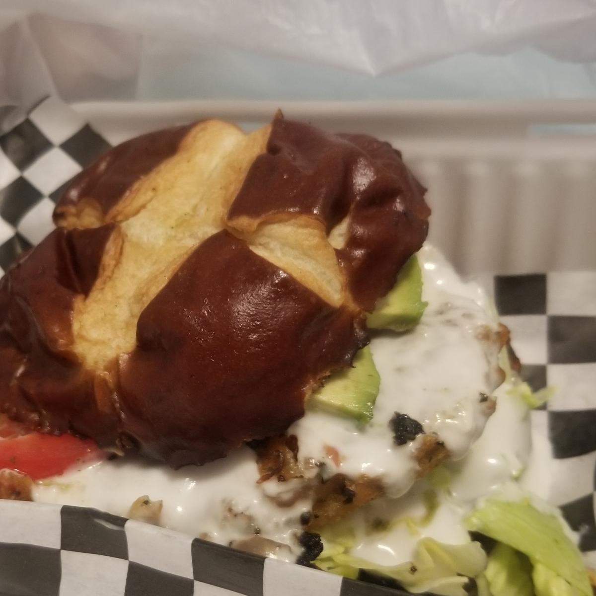 This sandwhich is SO GOOD. As soon as you walk in, the cooking smells so yummy. They really are good with flavors. I added vegan bacon and vegan truffle sour cream. The little restaurant is cute, with cool plants, and i think it's family owned. To go boxes are not plastic. Couldn't tell if it was biodegradable though