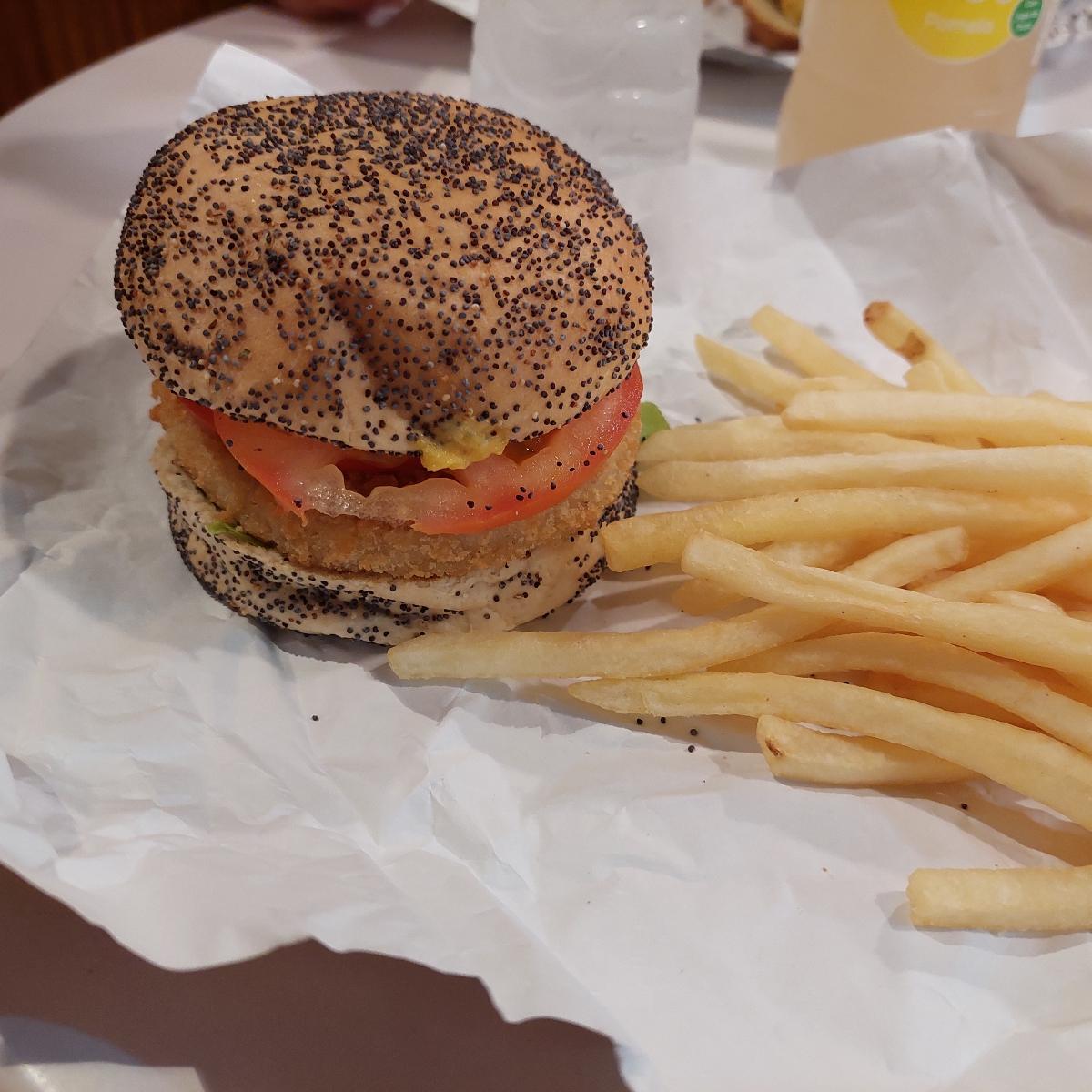 Nos Chiken Cryspy, con tomate y lechuga, el combo viene con papas fritas y una bebida a elección.