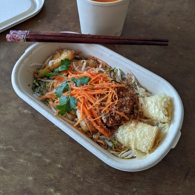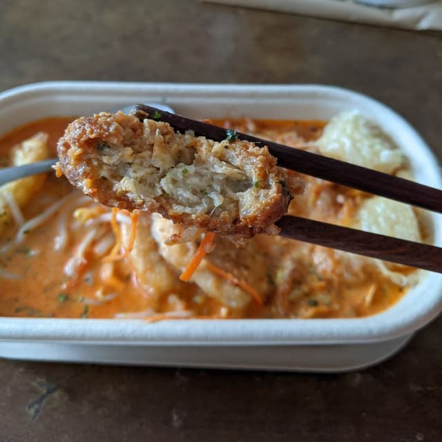 How is Green Common this good at everything?! 🤩 This #laksa is absolutely delicious 🤤 Their choice of using the same #veganfish as they do in their #fishandchips is a superb call! I'm not even jealous their older offering with #veganchicken by Heura is no longer available 🤭 Did someone pull an umbrella up? Cause I'm sensing shade! Shade from the fire that this #veganlaksa will not provide, unfortunately 🤷♀️ Fortunately for what they lack in #spicy they more than make up for in #lemak 🥥 That's #coconutmilk / #santan by the way 😉 This was an order via Grab in luckily very #biodegradable packaging. Let that be known! This is slowly becoming my favorite vegan restaurant in Singapore 😋 I highly recommend this #bestpicks dish!! 📡