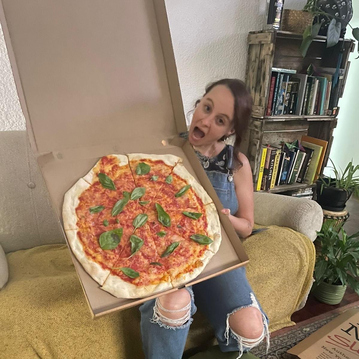 Delicious vegan pizza! We made a big salad on the side and ended up putting it on top of the pizza! Super delicious!