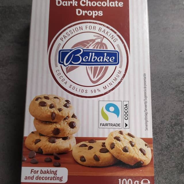 Pepitas de chocolate para cocinar y decorar. Del Lidl. Vienen 100gr, en una bolsita de plástico dentro de la cajita de cartón. Precio 0.62 euros.
