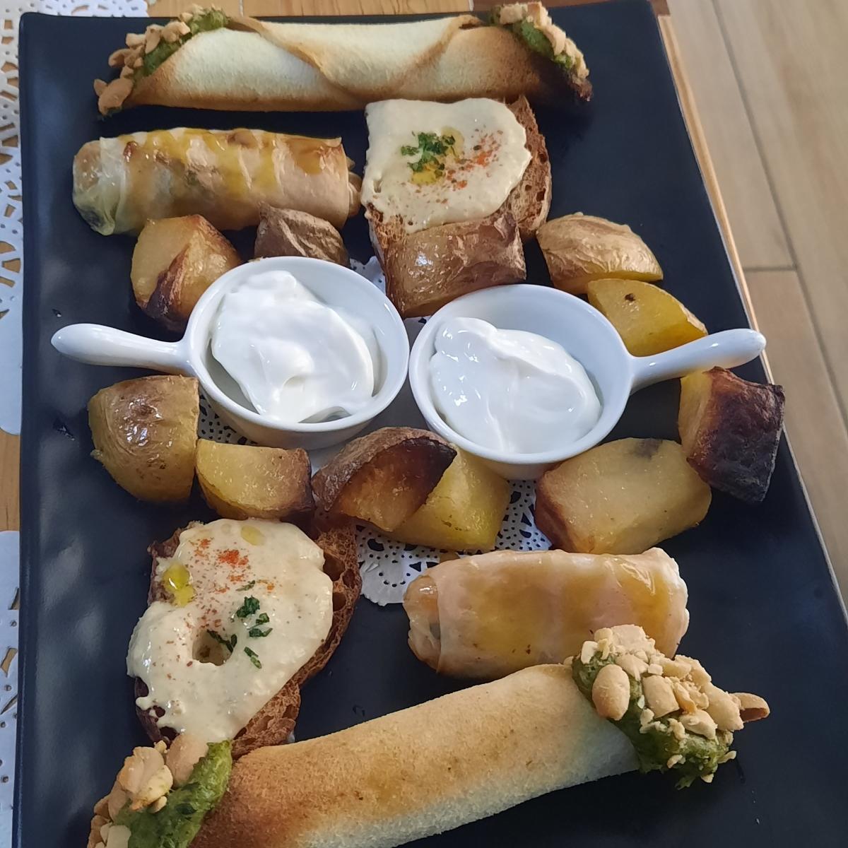 Questo antipasto è stato un sogno. Oltre all' impiattamento molto bello, anche il gusto di ogni singolo pezzo era fantastico. Il cannolo era molto croccante ed era riempito con una crema alla cicoria e pezzetti di arachidi, stupendo. Gli involtini stile asiatico contenevano oltre alle cerdure anche un pizzico di wasabi che ho stranamente apprezzato. Le patate erano molto saporite e morbide e la salsa yogurt/maionese era una nuvola molto leggera che non copriva il gusto di tutto ma lo esaltava. Complimenti alla cuoca e anche alla rafazza che ci ha servito che è stata molto amichevole.