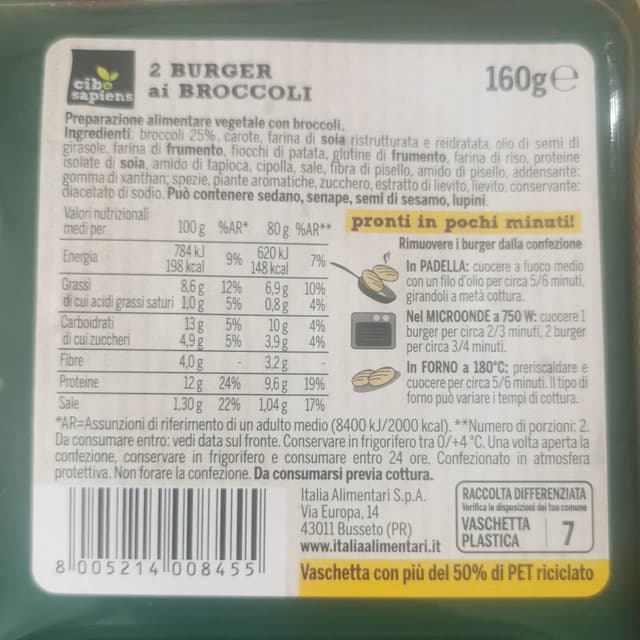 Il gusto non mi ha soddisfatto, i broccoli si sentono poco. Rispetto ad altri burger vegetali la consistenza ê rimasta molliccia con pochissima crosticina sopra. Non li ricomprerò