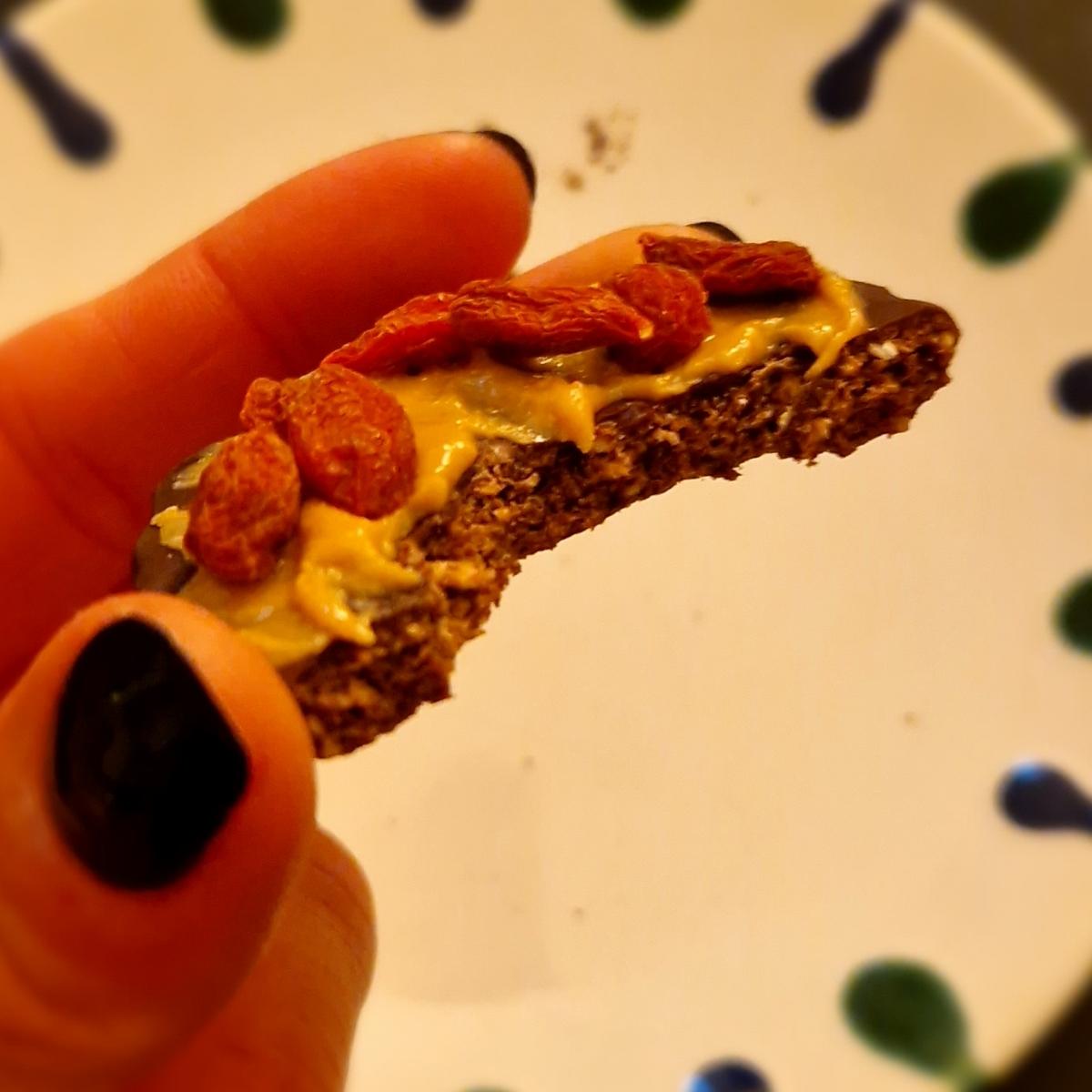 ok i literally ate all, but half a cookie, before i took a picture. solid oat cookies but a little to sweet for my personal taste and i would rather have the cookie not being a chocolate but a light oat cookie just topped with dar chocolate. i still ate the whole thing so, not much to complain about, haha.