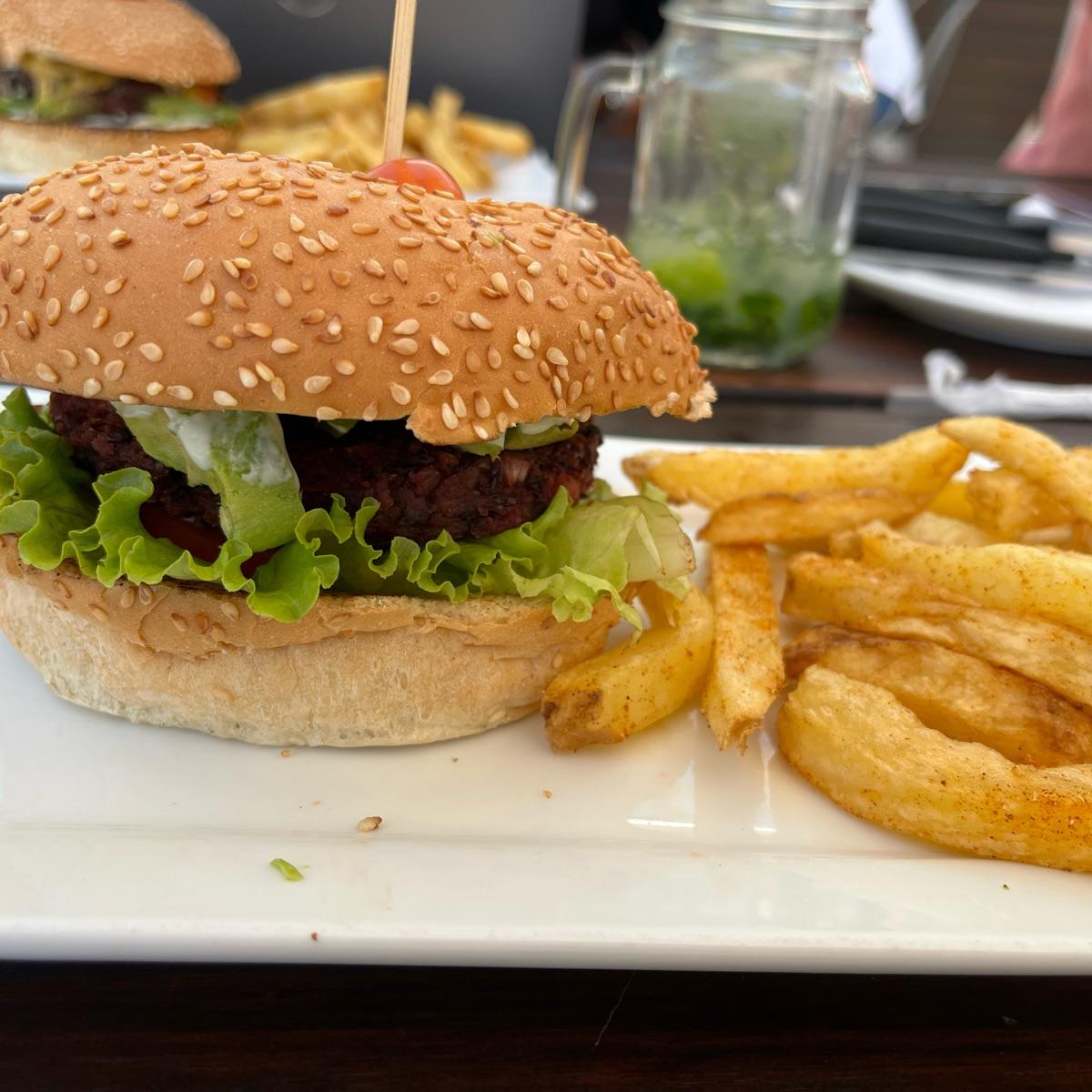 Honestly not the greatest burger I’ve ever had. The roll was a bit stale, the patty was not the patty they advertised on the menu and it lacked any flavour. The patty was meant to be a chickpea, zucchini and red pepper patty but this was black beans and something else. Maybe they ran out of stock and the kitchen was having a bad day but it definitely wasn’t worth R115. The chips were lovely though at least 🌱