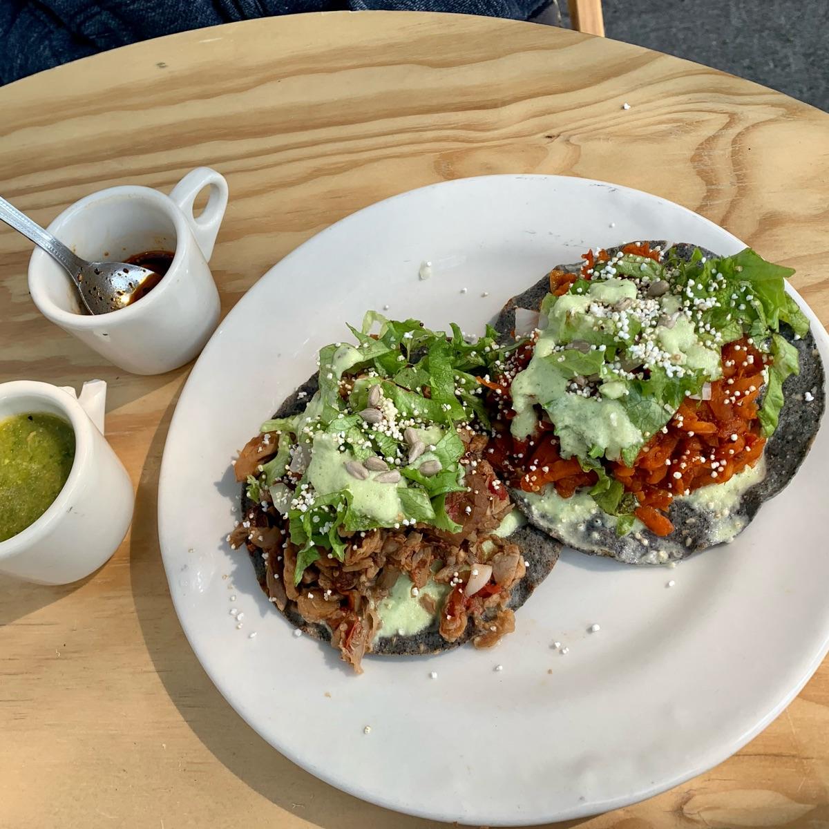 De plato fuerte tenían estas tostadas que me encantaron, una fue de tinga de zanahoria y la otra de ceviche de setas, ni les hace falta la crema y el queso de tan ricas que están, su aderezo junto con el amaranto y las semillas de girasol le dan un toque muy rico y nutritivo, además súper frescas para esta época de calor que ya comenzó #vegantostadas #veganfood #veganrestaurant #vegandeli