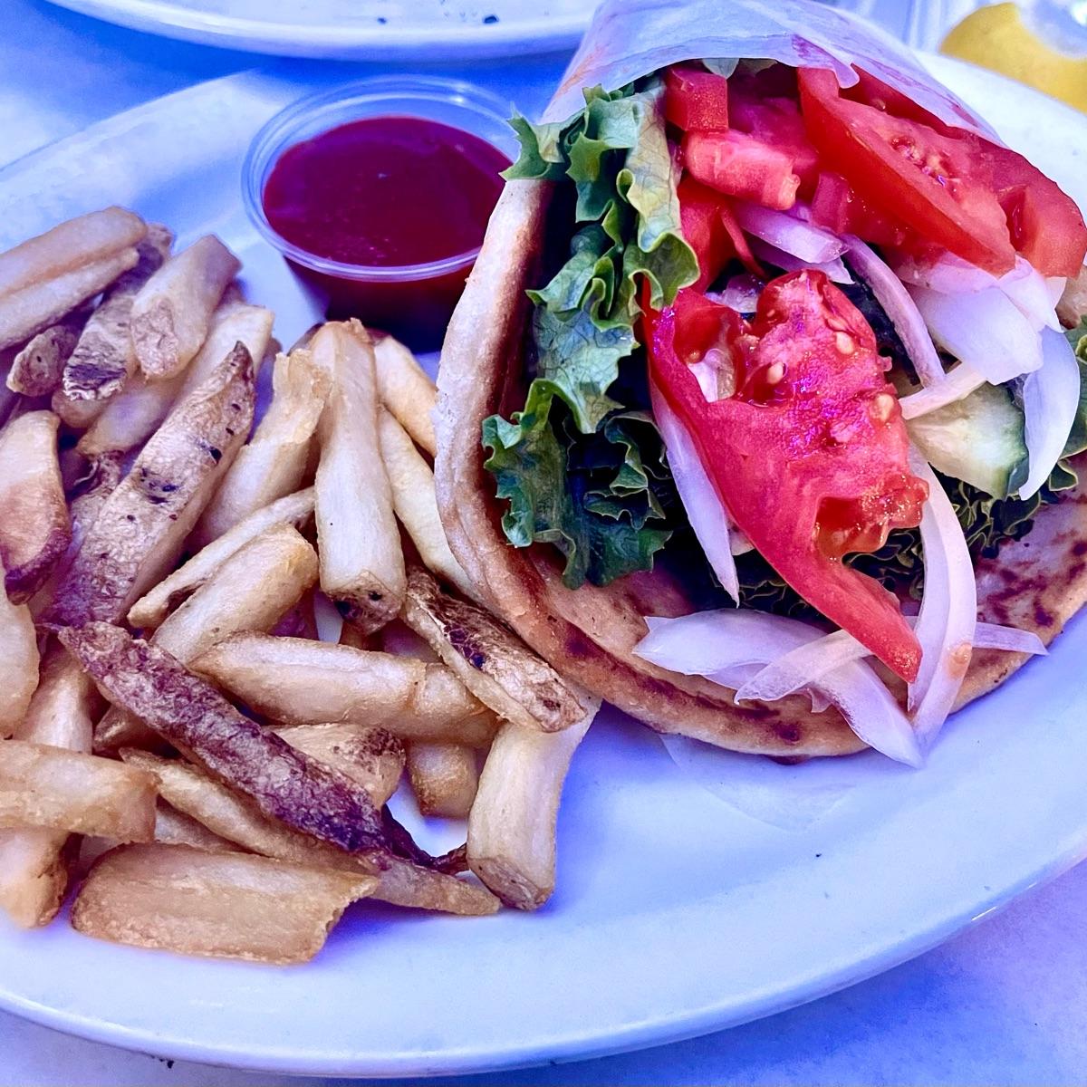 I give it a 5 star review because they finally added a veggie Pita. Every time I take my parents there I had a hard time finding items I can eat. So I appreciate the meatless and dairy free option. It was absolutely flavorful. It had a good amount of hummus, onions, cucumbers, lettuce and tomatoes and was bursting with flavor. Definitely recommend it.