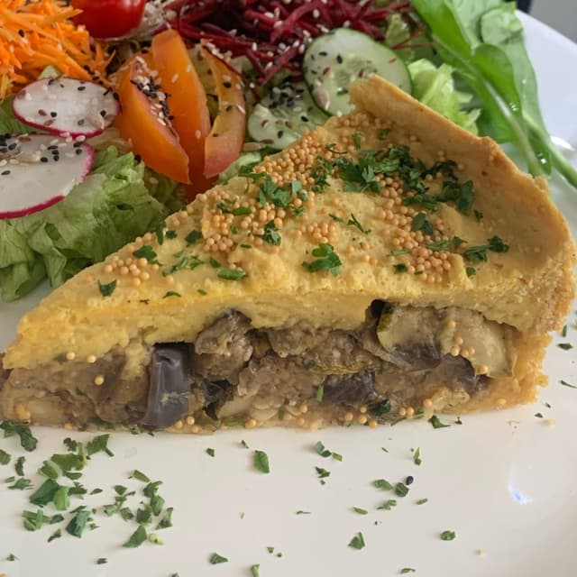 Essa torta é feita com farinha de grão-de-bico = SEM GLÚTEN