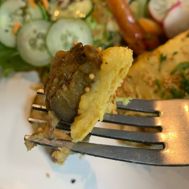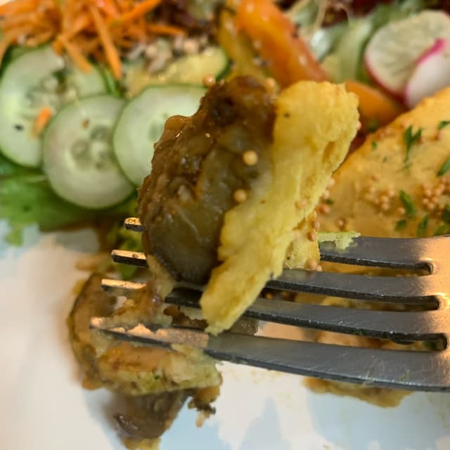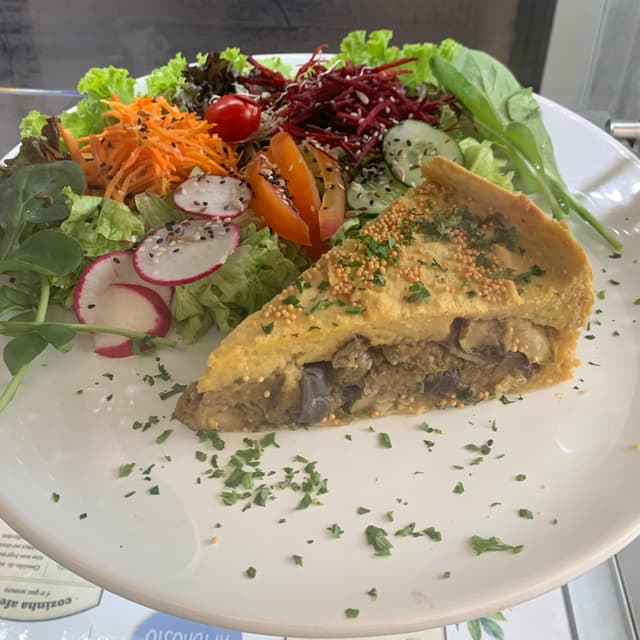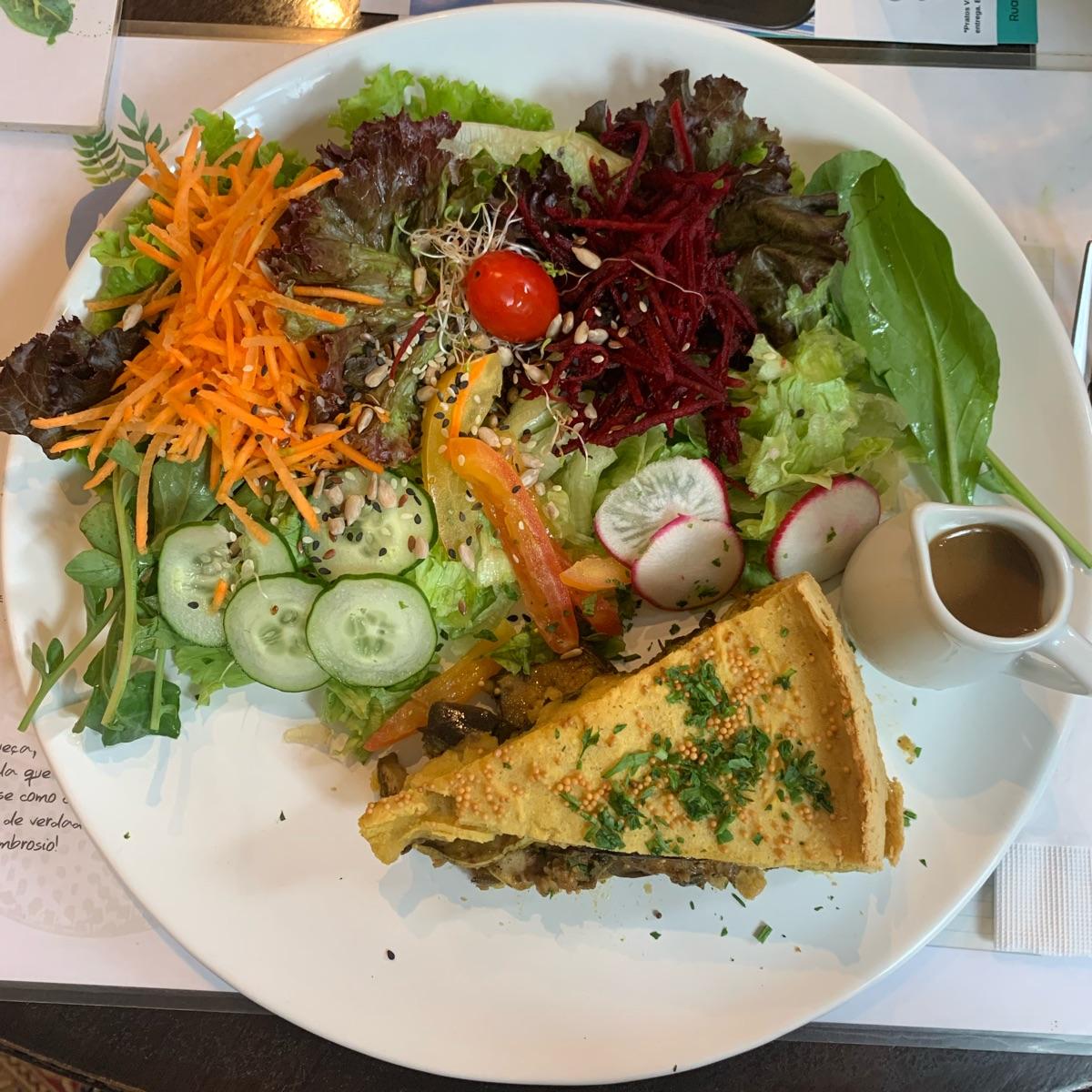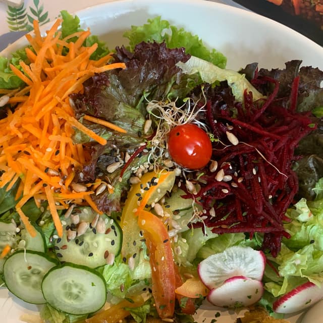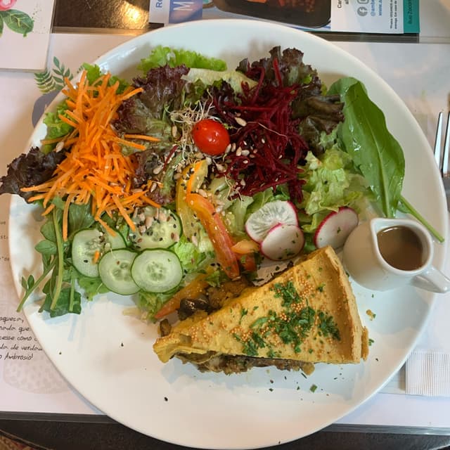 Vêm acompanhado de uma super e enorme salada 🥗 fresca, e você escolhe o tempero entre 3 opções - escolhi o balsâmico com mostarda e melado 😋 divino!!!