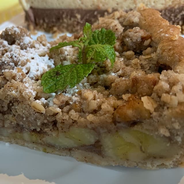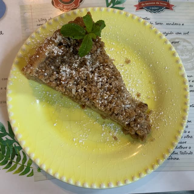 Torta Integral 🥧 maravilhosa de banana 🍌 que chegou quentinha, como se tivesse acabado de ser assada! Desmancha na boca ressaltando o sabor divino de banana 🍌 que eu amo (aliás, amo tudo feito com banana)