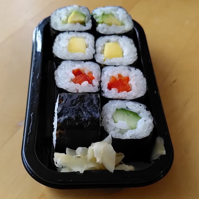 Two fresh makis of each, nice rolls and fresh ginger made for a nice treat once arrived home!
