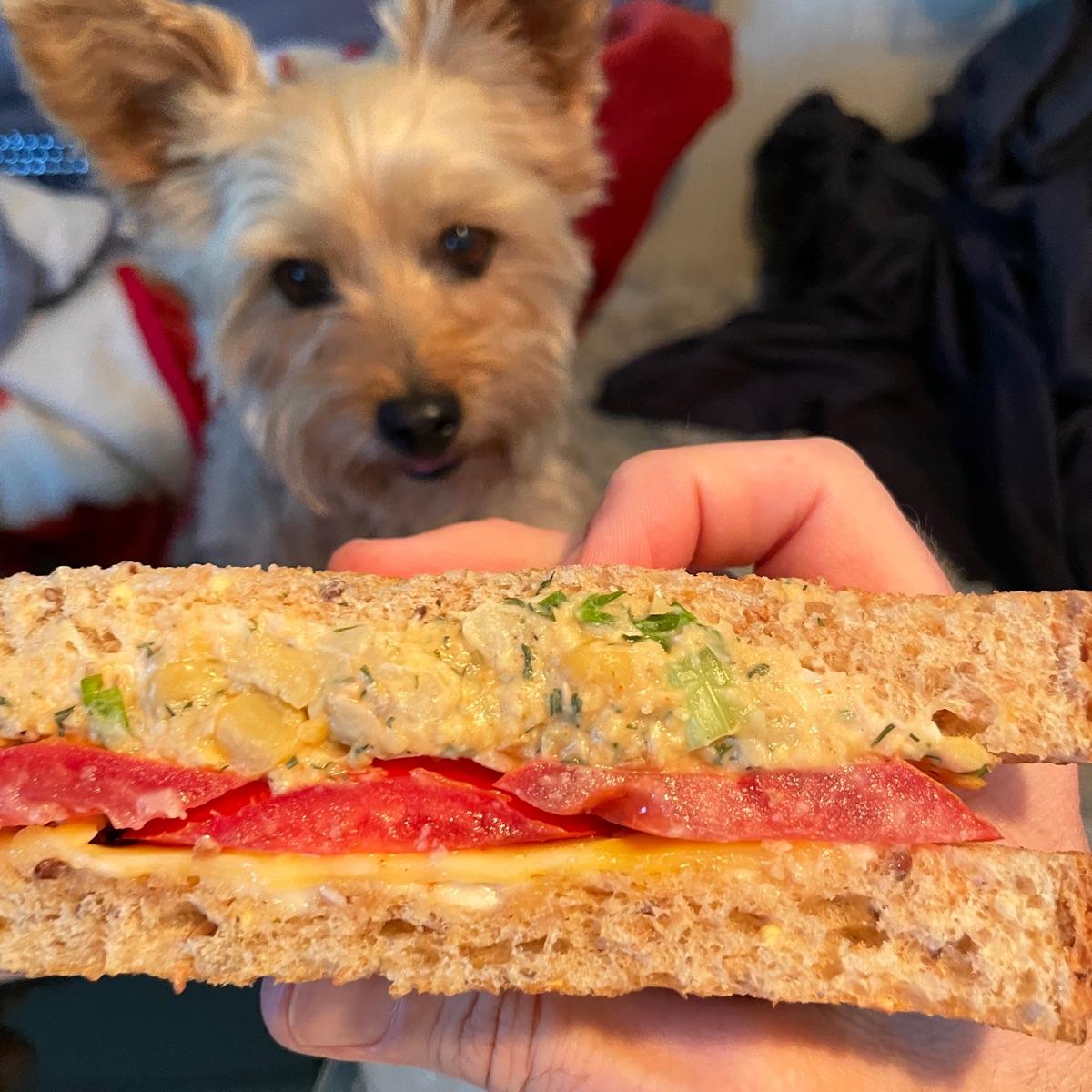 This sandwich was the bomb!! Perfectly seasoned chickpeas topped with tomatoes and Mayo.