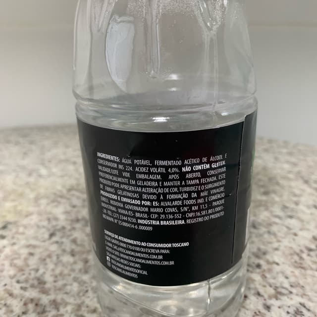 Vinagre de álcool, serve não só para lavar as frutas quando chegam da feira, uso também para fazer limpeza do cesto da máquina de lavar louça