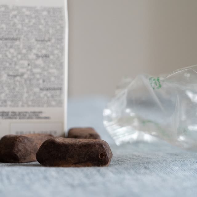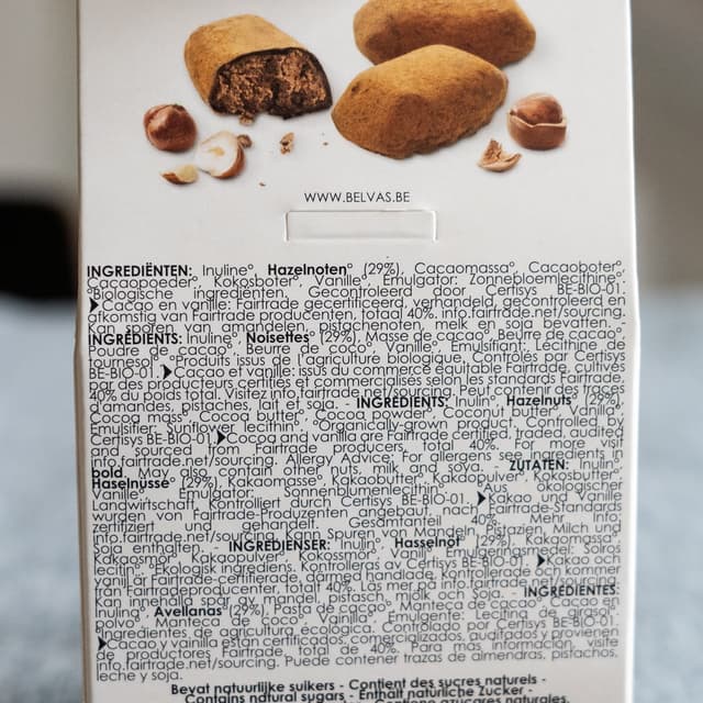 They are not sweet— maybe it helps to read the #nosugaradded label and adjust one’s expectations before taking a bite. They are sweetened with just enough inulin to take the edge off the cocoa. Inulin is a fiber that’s usually chicory-derived. It’s low glycemic, acts as a prebiotic and increases calcium absorption.