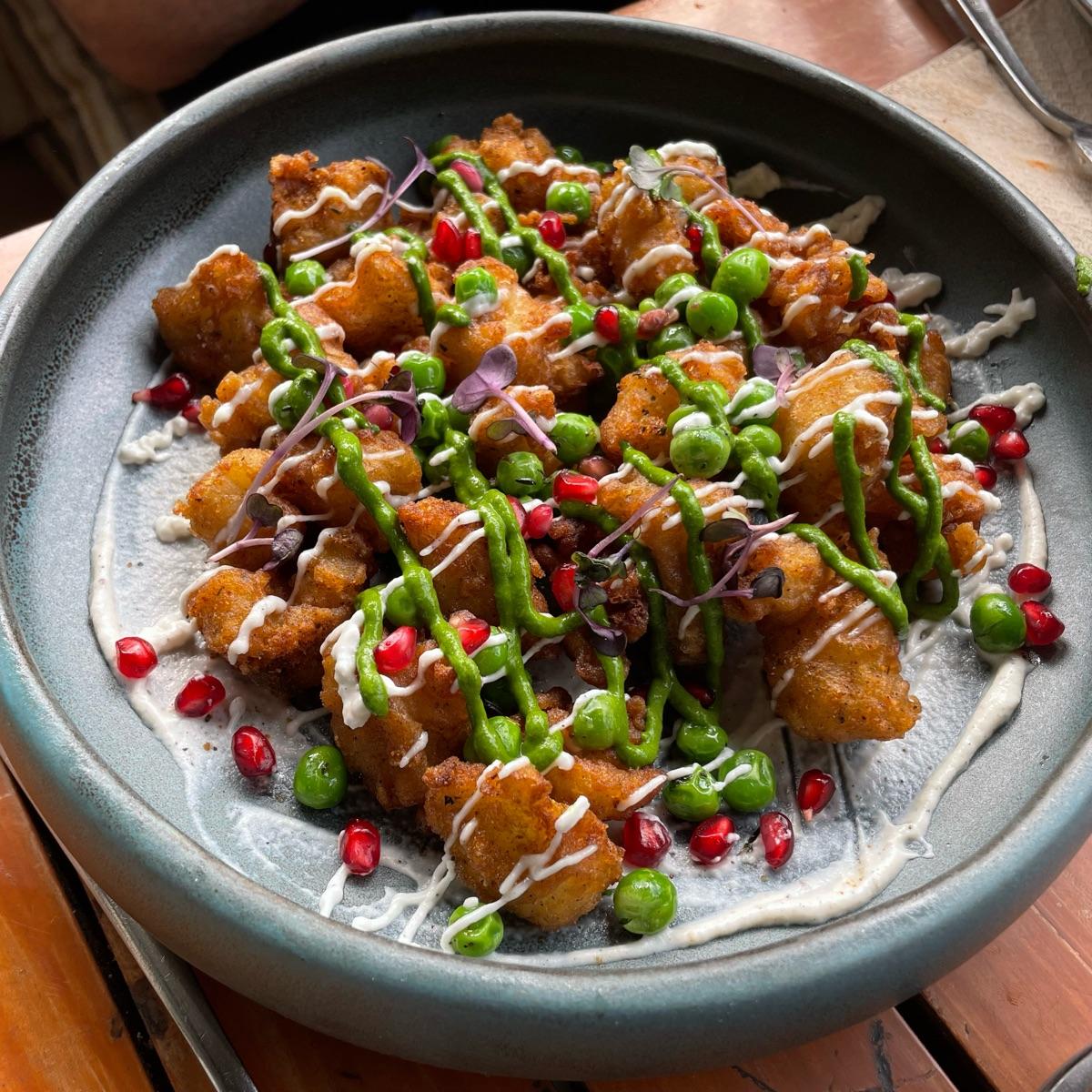 Tasted very good because it had creamy and crunchy elements to it topped with well seasoned peas and pomegranate. But unfortunately definitely didn’t taste like Jamaican jerk at all. Once you get over the disappointment of how it’s not jerk cauliflower, you will enjoy the dish.