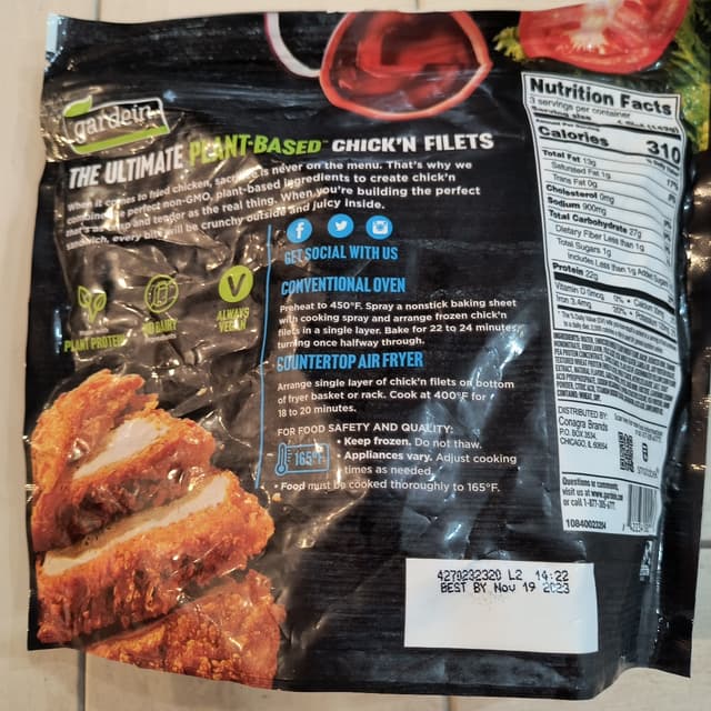 I know Gardein revamped some of their products to keep up with momentum in the plant-based freezer aisle, so I decided to try the new chick'n filets when they were on sale. And the new chick'n filets are not cheap-- typically priced at $8.99 or $9.99 for a package of three.
