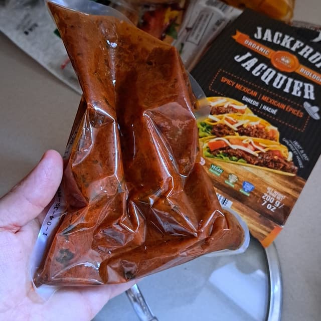 I wanted jackfruit to make a Mexican tortilla soup, and this is all Whole Foods had!!! So surprising. It looked DISGUSTING in the bad lmao! It didn't add a lot of value to the dish. It had a pulled beef texture, which I never liked. Glad I tried it, but not for me. #byebyejackfruit