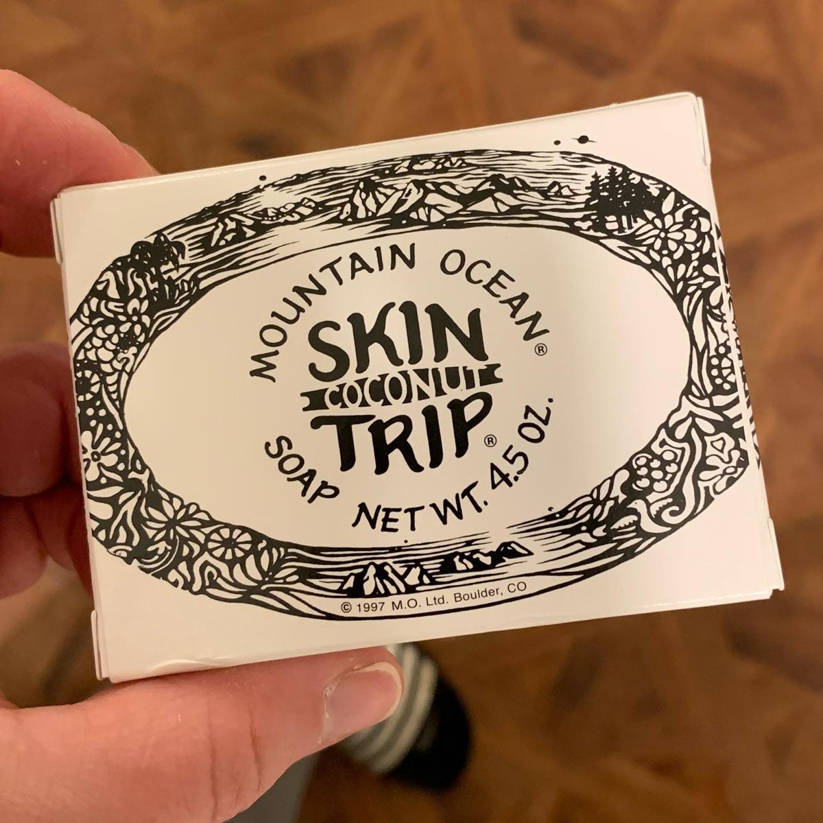 This soap smells like coconut, is smooth, and rinses clean. It lasts about 2 weeks. Leaves skin feeling soft and while it is not advertised as a moisturizer, the coconut naturally moisturizes.