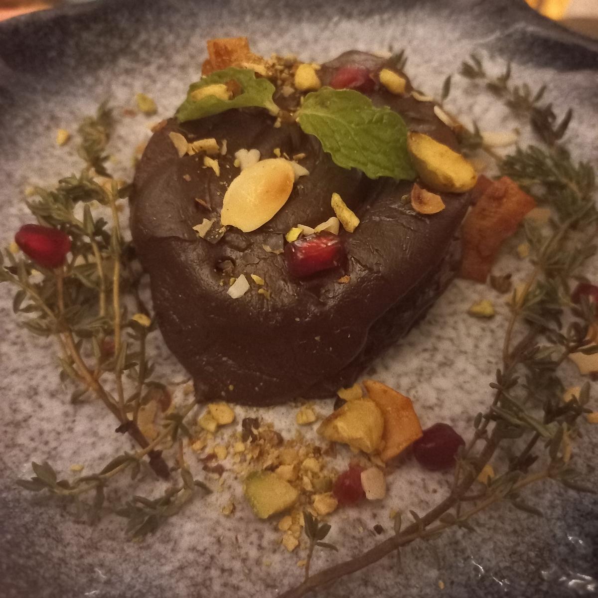 This is such a tasty dessert - very rich chocolate taste. Absolutely love the combination with pomegranate.
