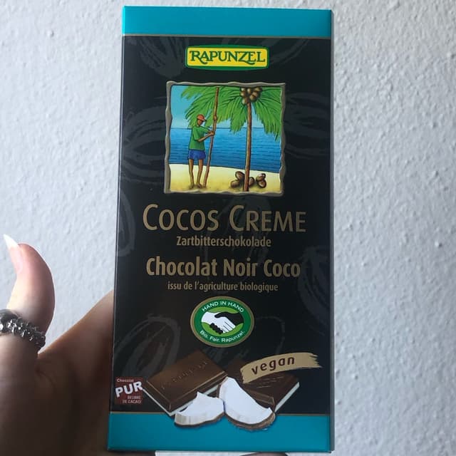 premetto che non mi piace il ciocc fondente. invece qui essendoci il cocco che addolcisce il tutto, va già meglio.