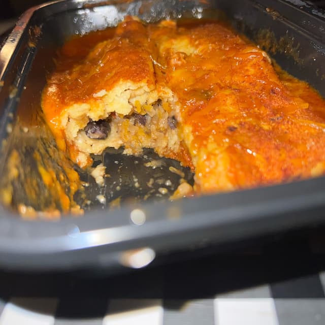 This was really good! A little salty. Flavors were really nice. I really liked the sauce. The cheese was so yummy. Some parts were cheesier than others. I’ve actually never had an enchilada before so I’m not really sure how they’re “supposed” to be taste wise and texture wise.