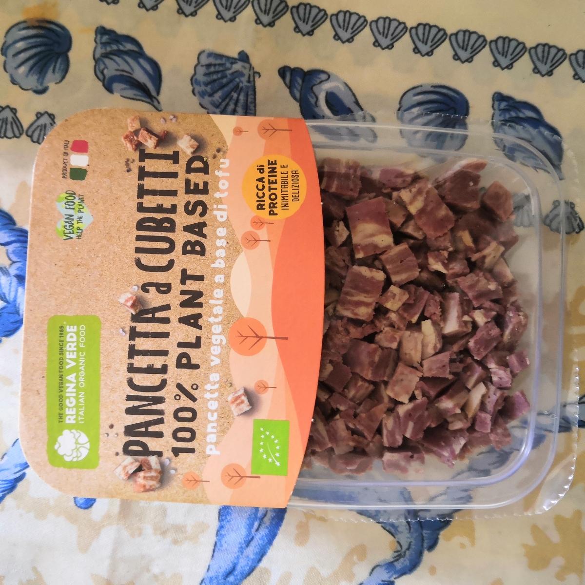 Pancetta vegetale a base di tofu 100% pant based. Ottima da abbinare ad un piatto di pasta come condimento. Imballaggio riciclabile plastica.