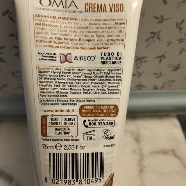 Crema viso all' argan, cruelty free. Ha una texture consistente che si stende un po' male,ma dopo essere assorbita,la pelle risulta luminosa e nutrita.