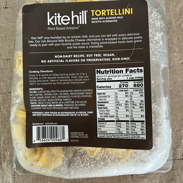 The ricotta tortellini from Kite Hill is a vegan-friendly pasta dish that offers a delightful taste. Made with a plant-based ricotta cheese, these tortellini are filled with a blend of flavorful ingredients that will leave you craving more. The texture of the tortellini is similar to the real thing, and it is made with non-GMO ingredients that are free of soy, dairy, and gluten. It is also a great source of protein, making it a healthy and satisfying option for the whole family. Customers have praised the deliciousness of this product, and it is definitely worth trying.