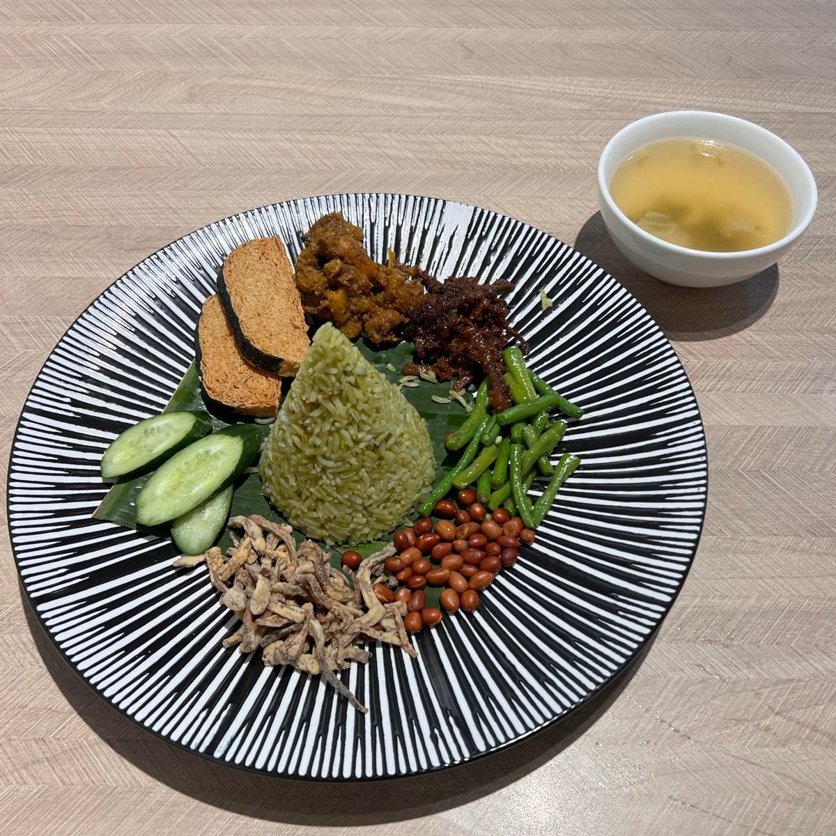 The rice is not as ‘lemak’,in fact it tasted deliciously healthy wth tht strong #lemongrass flavour. The #sambal was decent,thick spicy n not too sweet with vegetarian anchovies. Comes wth 2 pieces of fried beancurd skin, long beans,cucumber,nuts n vegetarian anchovies.