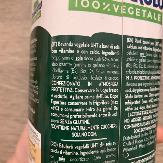 Bevanda alla soia molto buona e senza zuccheri. Fa una bella schiuma con il cappuccino.