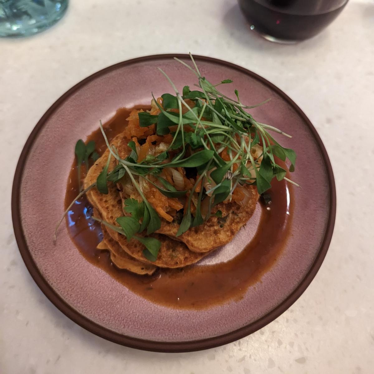 Very interesting dish which we had as a starter, the pancake texture and flavour were great