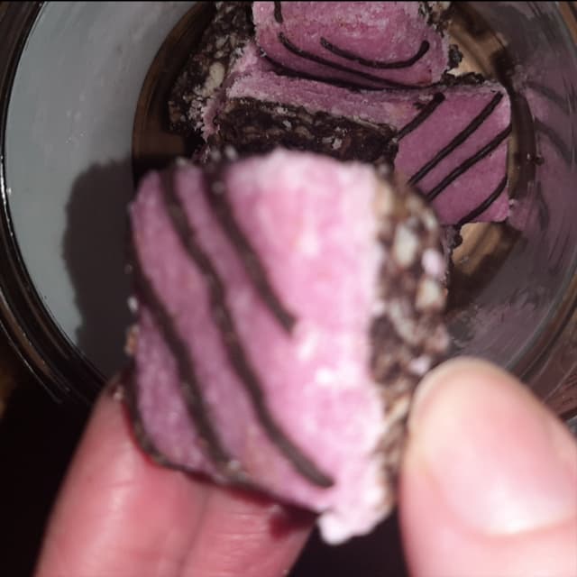 These are so tasty! Very similar to coconut ice but fancier. But have not been able to find them lately so really hoping Woolworths has not discontinued them, especially cause they are my mom's favourite :(