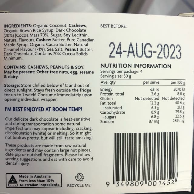I keep trying Health Lab products hoping one of them will be worth the crazy price but I’m yet to find one…😓 This is a yummy chocolate covered coconut bliss ball but doesn’t have the indulgent gooey-caramel it advertises unfortunately.