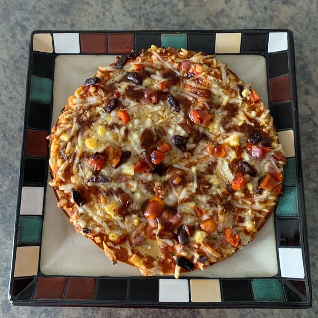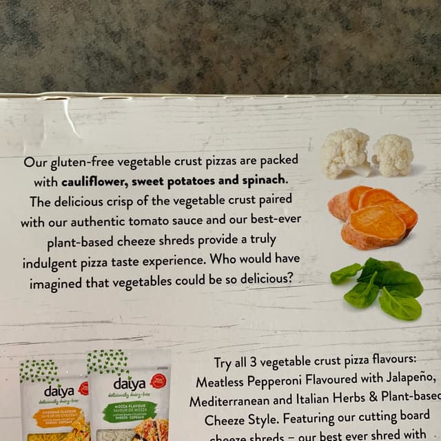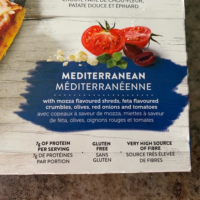 The pizza was crispy, not soft and mushy. And the taste / flavour was delicious. The taste of the ingredients listed on the front of the box (mozzarella, feta, olives, red onions, tomatoes) really came through. The cauliflower/sweet potato/spinach crust was crunchy.