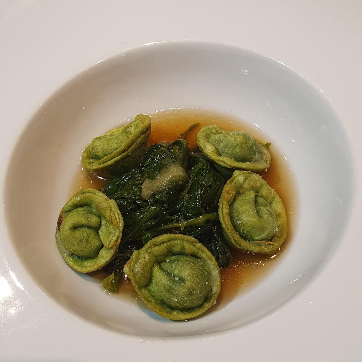 Molto buono il brodo e interessantissima la consistenza un po' croccante dei ravioli, mordendoli esplode in bocca il ripieno cremoso.