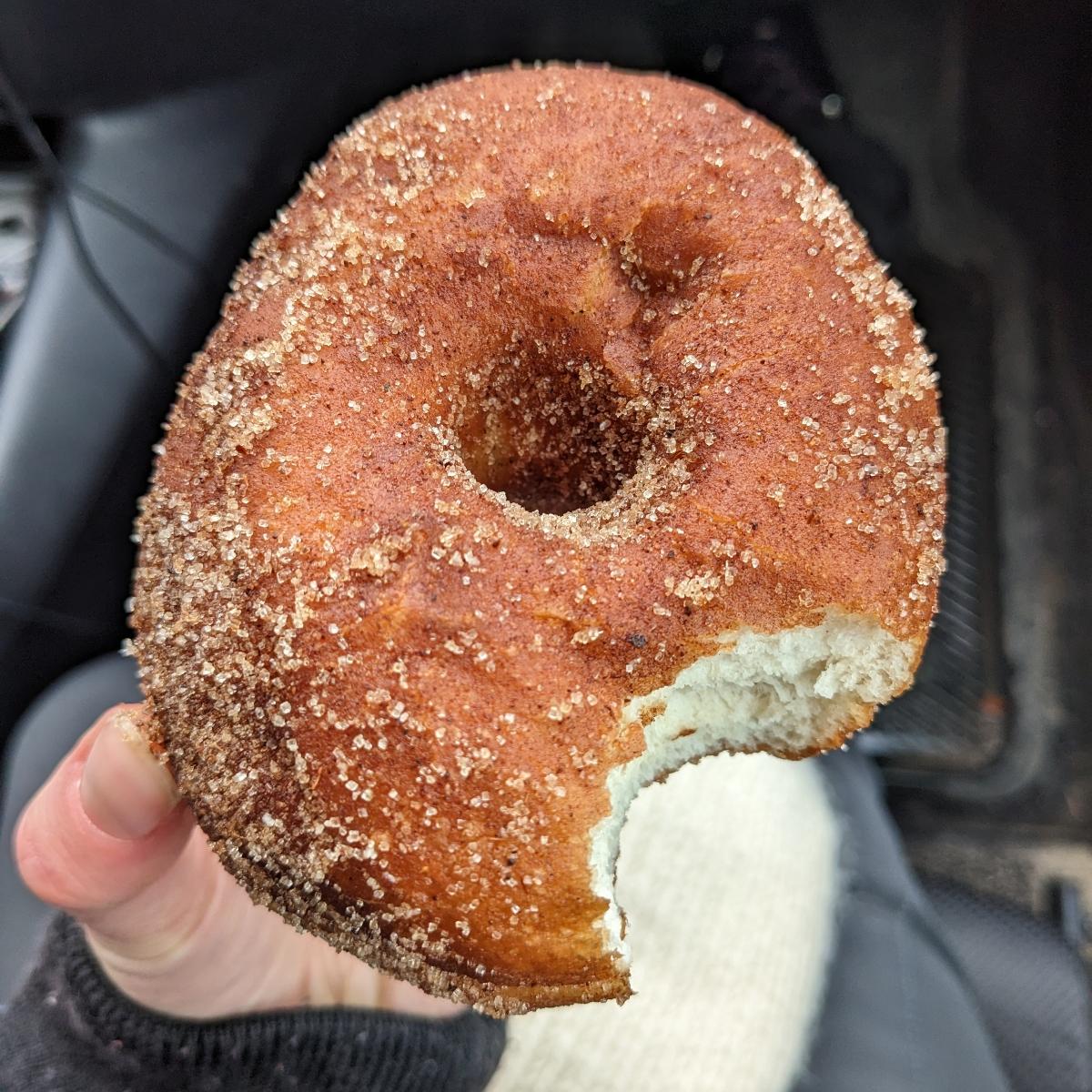Classic fluffy cinnamon sugar donut! Crispy and sugary on the outside.