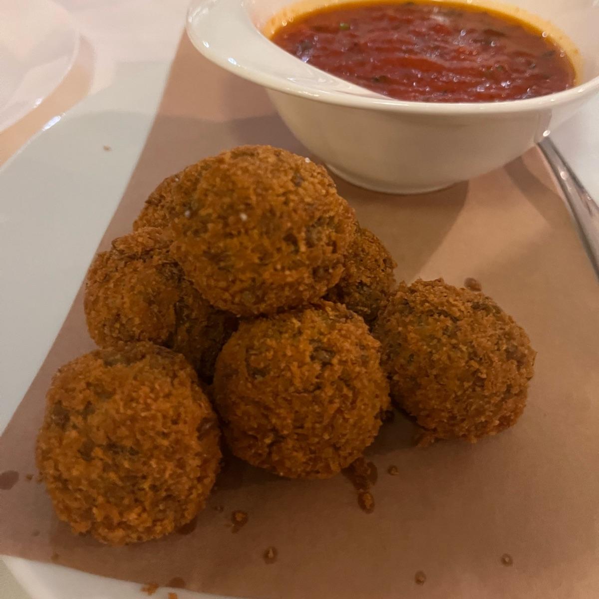 The lentil balls were pretty dry… hence the tomato sauce that was delish 😍 we even got some of the sauce to bring back home… that is how much we loved it ❤️