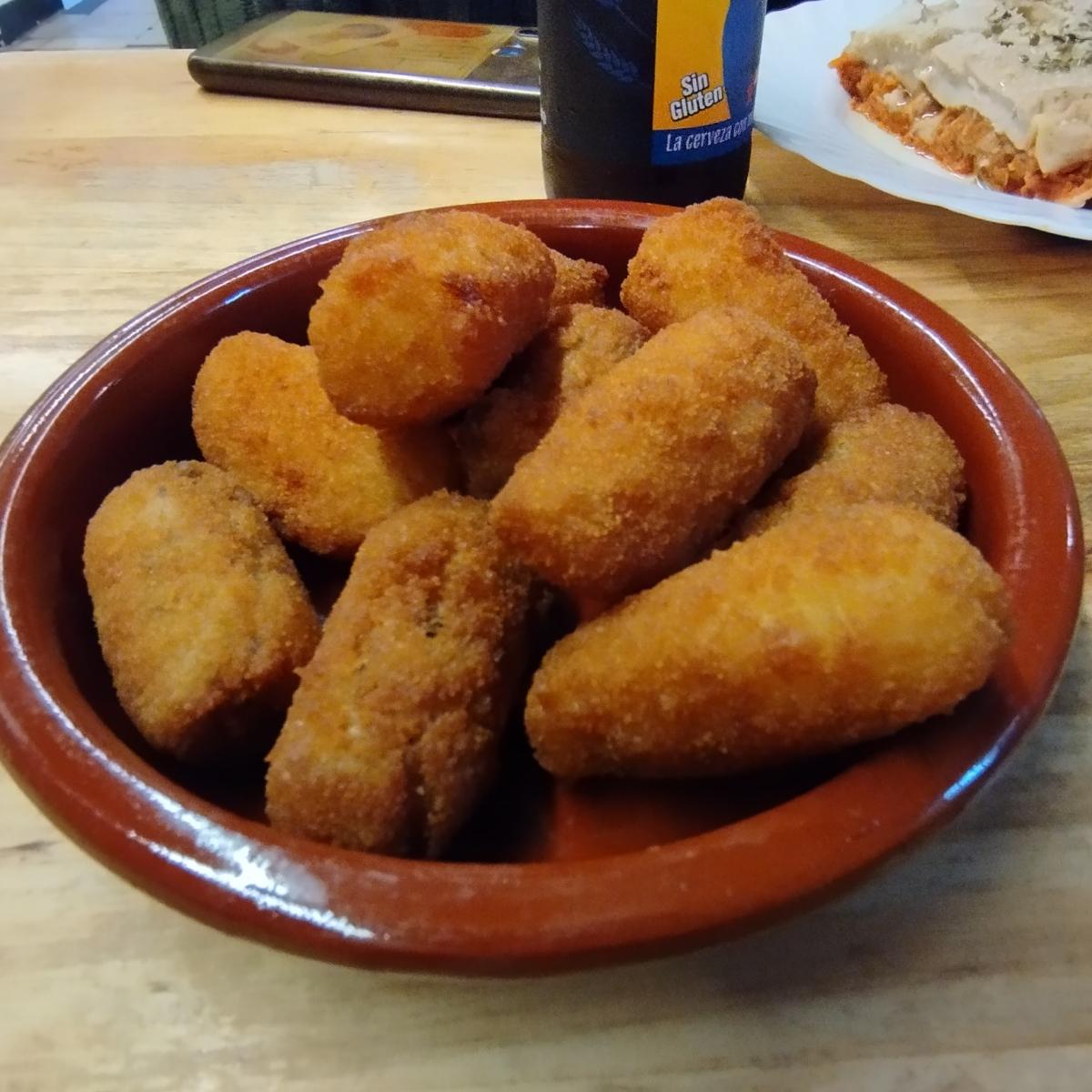 Tengo el listón de croquetas muy alto por otros veganos que he tomado y éstas, aunque ricas, no son de mis favoritas. Para mi gusto les faltaba sabor. El empanado sí que está en su punto, muy crujiente