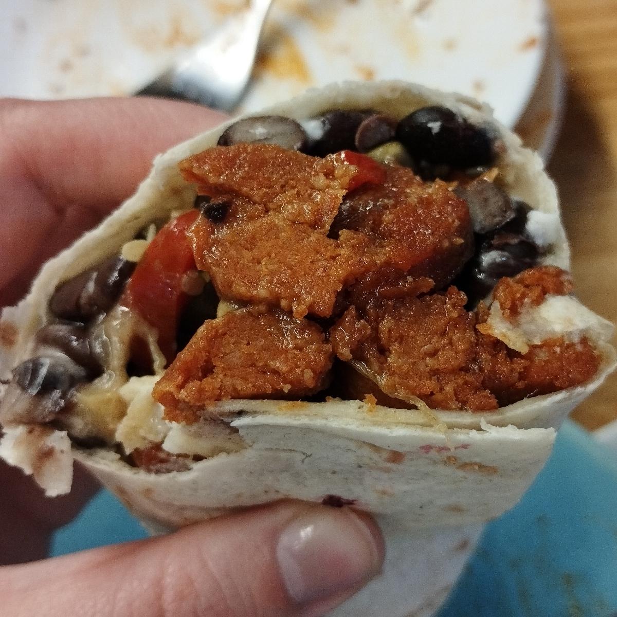 No se nota nada el sabor del chorizo y lleva judías negras y no frijoles (como anuncian), pero por lo demás no está mal. La salsa me ha encantado. Sí que me hubiera gustado que incluyera algún acompañamiento, como hacen con las albóndigas y las patatas.