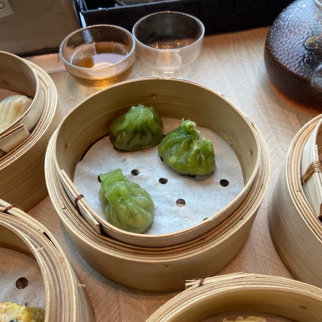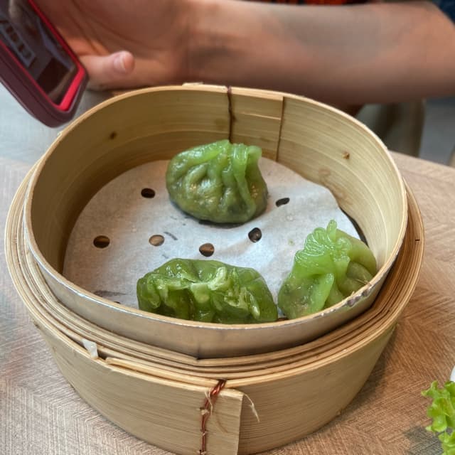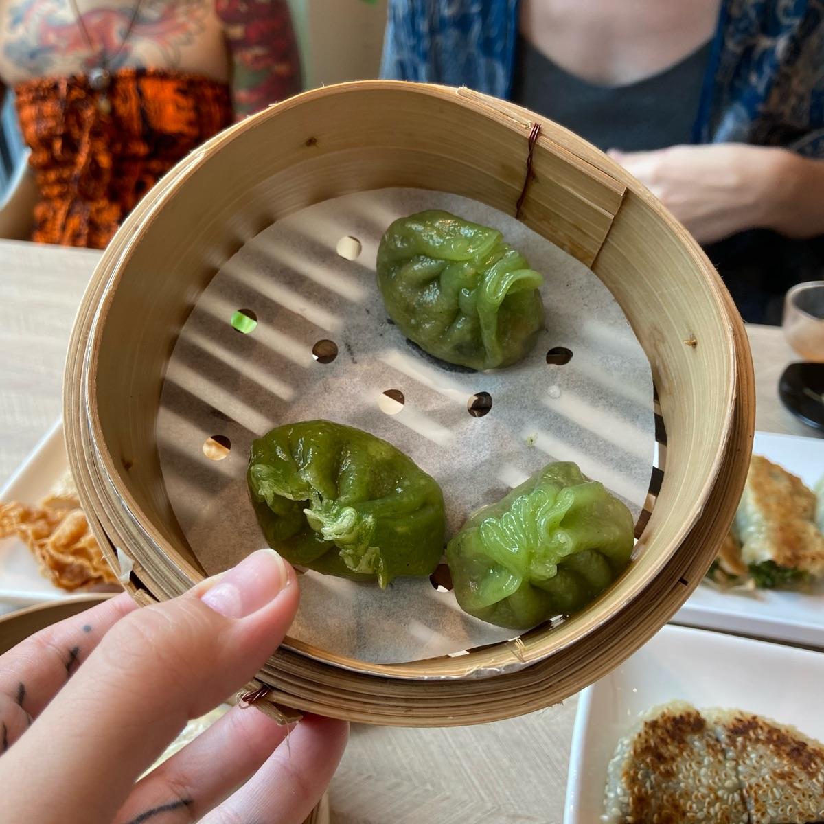 The green comes from #greentea I think 🍀 Then stuffed with a tonnes of #fakemeat! Like all the #dimsum I had here, I didn’t take a cross-section look at them but I think this was one of the better picks 😋 I mean, it’s green! 💚