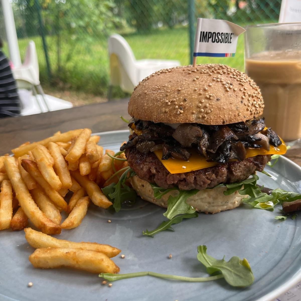 A very vegan friendly cafe at Dempsey. An Impossible patty, vegan cheese, grilled mushrooms and onions and some fresh greens on a soft burger bun. The fries were a bonus. Too good.