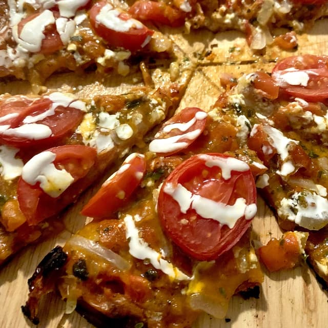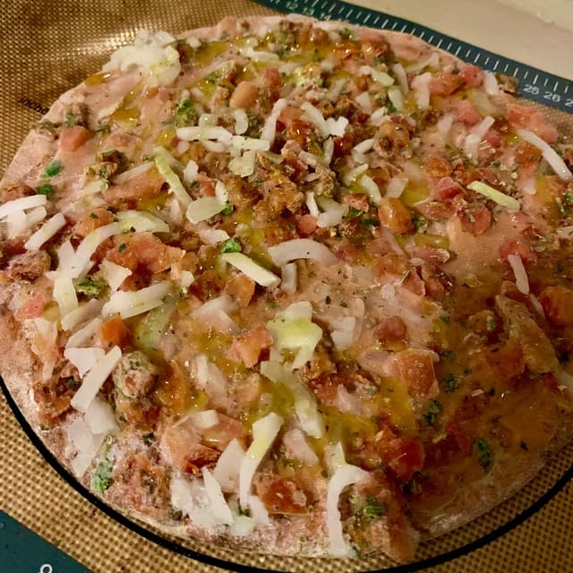 Effettivamente più che una pizza è effettivamente una bruschetta, simile alla precedente che ho recensito, l’ho infornata così com’era - è presente una buona quantità di cipolle, a me piacciono molto ma chi non le gradisce meglio eviti - però alla fine non ho resistito e ho aggiunto a freddo dei pomodorini e un filo di panna di anacardi perché mi sembrava un po’ triste 😅