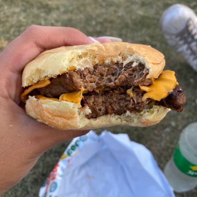 Con respecto al sándwich era doble hamburguesa, doble cheddar, pepino,,cebolla y ketchup en un pan súper tierno.
