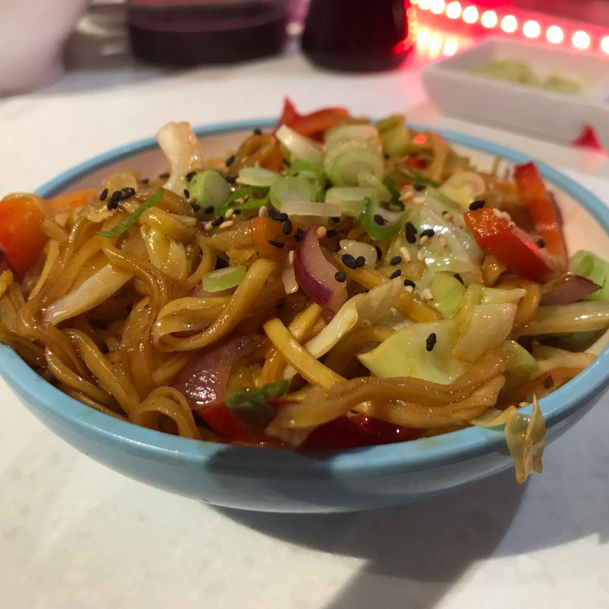 Quite a small portion and the noodles were short, but the flavour was big. Very tasty tangy sauce and perfectly cooked red capsicum, red onion, spring onion, cabbage, and sesame seeds on top. I wish they had bigger portions of this! It’s so good!